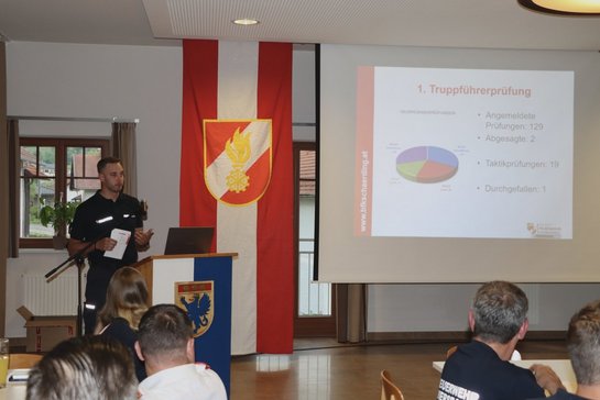 An die Begrüßungsworte angeknüpft präsentierte BR Haidinger einen kleinen Rückblick über besondere Verdienste und Podestplätze in den verschiedensten Leistungsbereichen der Feuerwehren im Abschnitt Raab. Die anwesenden Führungskräfte wurden anschließend über alle bedeutenden Änderungen im schnelllebigen Feuerwehrsystem instruiert.