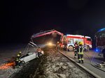 Der am Heck erfasste PKW wurde dabei über eine Böschung geschleudert und auch der Pritschenwagen geriet mit weggerissenem linken Vorderrad über eine Böschung in die angrenzende Wiese. Beide Lenker zogen sich beim Zusammenstoß Verletzungen unbestimmten Grades zu und wurden von Rettungskräften des Roten Kreuzes ins Krankenhaus gebracht. Eine Rettung mit dem hydraulischen Rettungsgerät der Feuerwehr war - entgegen ersten Meldungen - glücklicherweise nicht erforderlich.