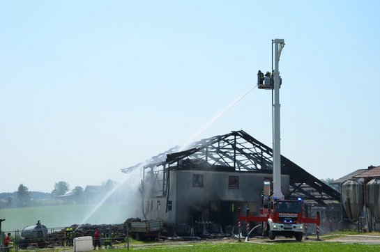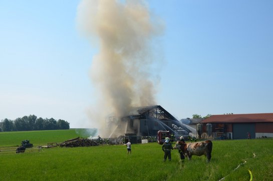 Insgesamt 11 Feuerwehren waren notwendig, um den Brand eines landwirtschaftlichen Objekts in der Taufkirchner Ortschaft Wolfsedt zu bekÀmpfen.