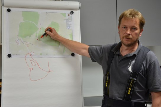 Beim dritten Teil der Übung ging es zur Sache. Übung – Suchaktion von vier Jugendlichen. Die Einsatzleitung übernahm HBI Thomas Huber (FF Kössldorf) unterstützt durch HBI Lukas Baminger (FF Aschenberg). Bei der Besprechung der Gruppenkommandanten der verschiedenen Feuerwehren bzw. Hundestaffel wurde das Einsatzgebiet auf der Karte abgeklärt und die Feuerwehren rückten zu den Suchgebieten aus.